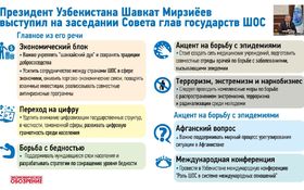 В ходе своего выступления на виртуальном саммите глав государств ШОС Президент Узбекистана Ш.М.Мирзиёев выдвинул инициативу о Разработке конкретных практических мер по реализации Программы сотрудничества в области продовольственной безопасности.